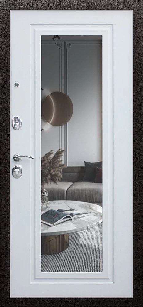 Надежная входная Дверь Комфорт с зеркалом премиум класса по цене 30 575 руб. Большая толщина стали защитит от проникновения в ваш дом, квартиру или коттедж. Используется очень качественная фурнитура: замки, цилиндры, ручки, защелки. Покрытие и отделка двери изготовлено под внимательным контролем производителя. Дверь имеет долгий срок службы и гарантию.