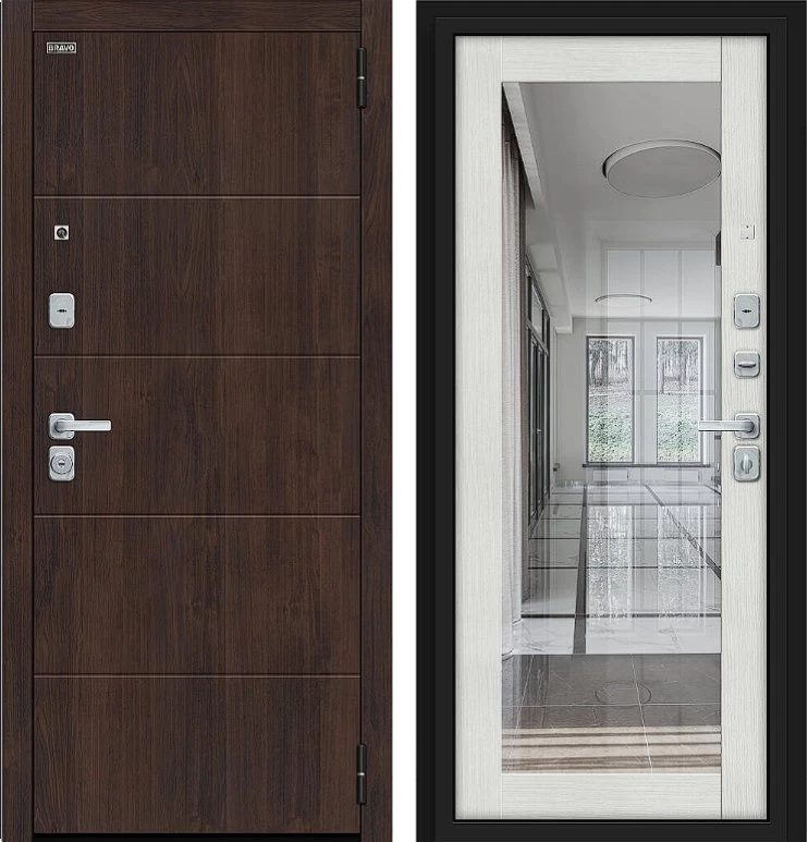 Надежная входная Дверь Браво Флэт/BChrome Almon/Bianco Melinga премиум класса по цене 44 775 руб. Большая толщина стали защитит от проникновения в ваш дом, квартиру или коттедж. Используется очень качественная фурнитура: замки, цилиндры, ручки, защелки. Покрытие и отделка двери изготовлено под внимательным контролем производителя. Дверь имеет долгий срок службы и гарантию.